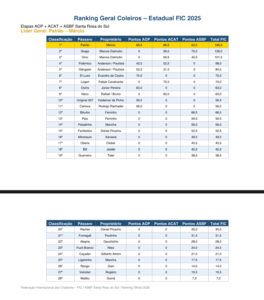 A próxima etapa do Estadual FIC acontece no dia 08 de novembro em Capivari de Baixo (SC).