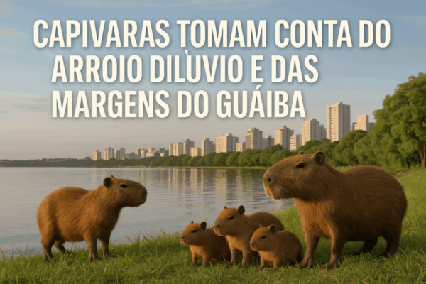 Nos últimos dias, um grupo com mais de 10 capivaras foi visto circulando livremente pelo Arroio Dilúvio, na Avenida Ipiranga, e também pelas margens do Guaíba, em Porto Alegre (RS).