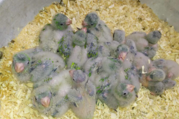 Além dos pássaros adultos, o que mais chamou a atenção foi a presença de 61 caturritas (Myiopsitta monachus) — entre filhotes e juvenis — muitas delas ainda incapazes de se alimentar sozinhas. A espécie é típica do Rio Grande do Sul e altamente visada no comércio clandestino.